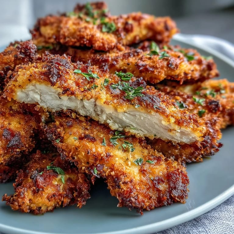 If you want an even crispier coating, swap the regular breadcrumbs for panko and add a tablespoon of cornstarch to the breading mixture. The cornstarch creates tiny pockets that puff up and shatter when you bite into them. I also like to spray the strips a second time halfway through cooking, which helps any pale spots catch up and turn golden.