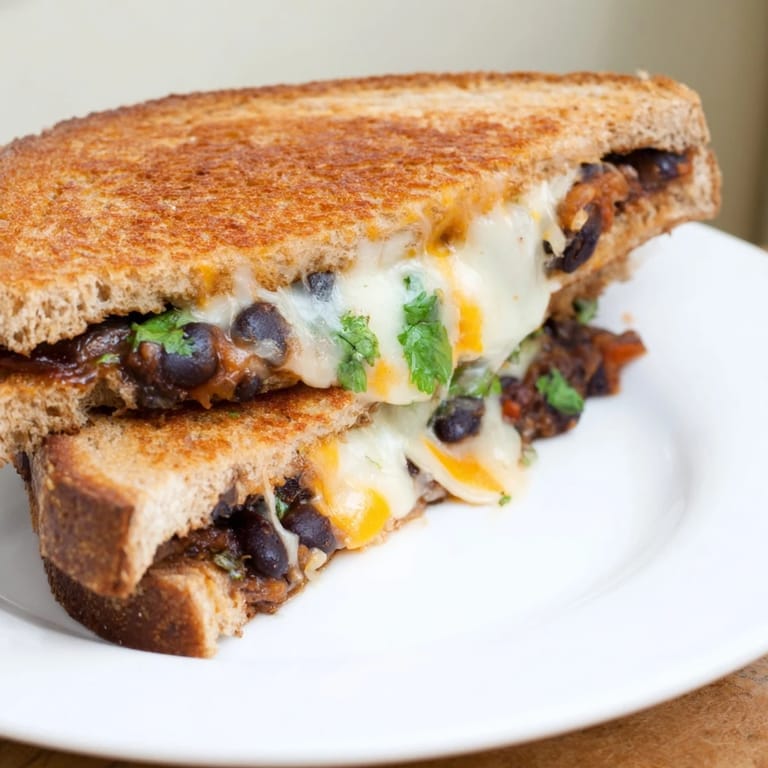 Save There's something about a grilled cheese that stops time in the kitchen. I discovered this black bean version on a Tuesday afternoon when I opened the pantry looking for lunch and found a can of black beans staring back at me alongside some cheddar. The first bite was better than expected—the beans gave it substance and warmth, transforming something familiar into something that felt genuinely new. Now when people drop by hungry, this is what I make.