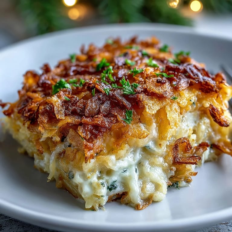 Save The first time I made Cheesy Hash Brown Casserole, the kitchen seemed to fill with an inviting warmth long before the oven even preheated. A stray cornflake ended up under the fridge, and my cat immediately claimed it. I remember the sizzle when I melted the butter, measuring everything quickly as my friends kept asking if they could sneak a taste before it was ready. The onion's sweetness mixed with garlic on my cutting board, making my mouth water. Easter afternoon was drifting in slowly from the window, and I could hear laughter echoing down the hall.