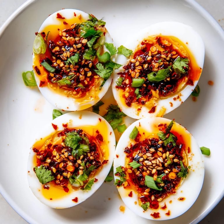 Save I discovered these eggs completely by accident one Saturday morning when I was standing in front of my fridge with nothing but time and hunger. There was a bottle of chili oil someone had gifted me sitting in the back—expensive-looking, intimidating—and I thought, why not just crack some eggs and see what happens? That first bite, with the yolk breaking into that spicy, fragrant oil, changed something about how I thought breakfast could taste. Now I make them whenever I need to feel like I'm eating something special, even on a Tuesday.