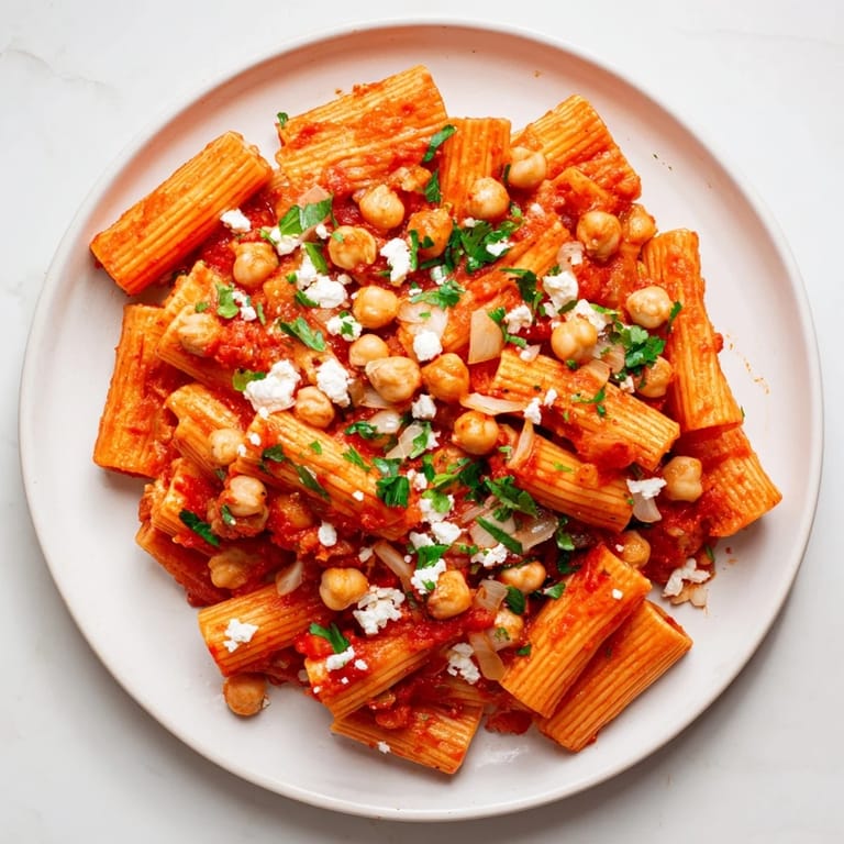 Save The first time I made harissa chickpea pasta, I was trying to use up a half-empty jar of harissa that had been lurking in my fridge for months. I'd bought it on a whim at the market, intrigued by the reddish paste and the promise of North African heat, but hadn't known what to do with it. That evening, with just pasta, canned chickpeas, and tomatoes on hand, something clicked—the spice bloomed into something so vibrant and alive that I found myself making it again the very next week.