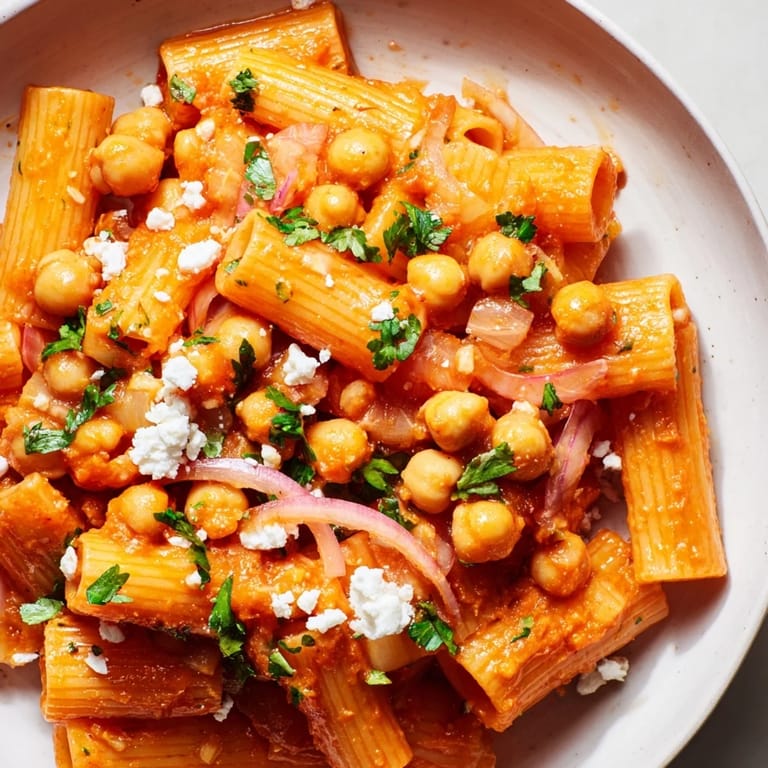 This recipe is a framework, not a cage. White beans work beautifully in place of chickpeas if that's what you have, and the pasta shape is flexible too—any short pasta that can hold sauce is your friend. I've added roasted red peppers, spinach, zucchini; each addition changes the mood without breaking the spell. One night I stirred in a handful of spinach in the last minute, and suddenly it felt like spring. The point isn't to follow instructions rigidly; it's to understand the logic so you can make it your own.