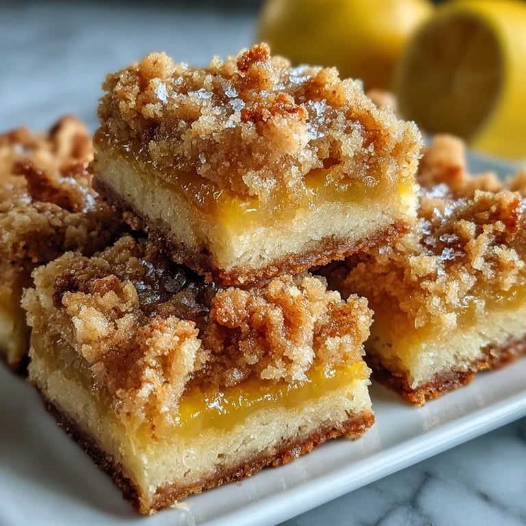 Save The smell of lemon zest hitting warm butter is one of those kitchen scents that stops you mid-motion. I was looking for something bright to bring to a spring potluck, and these bars came together almost accidentally, born from leftover lemons and a craving for something both tangy and sweet. The crumb topping was a last-minute addition, inspired by a coffee cake I'd made the week before. When I pulled them from the oven, golden and fragrant, I knew I'd stumbled onto something worth repeating. They disappeared before I even got a second piece.
