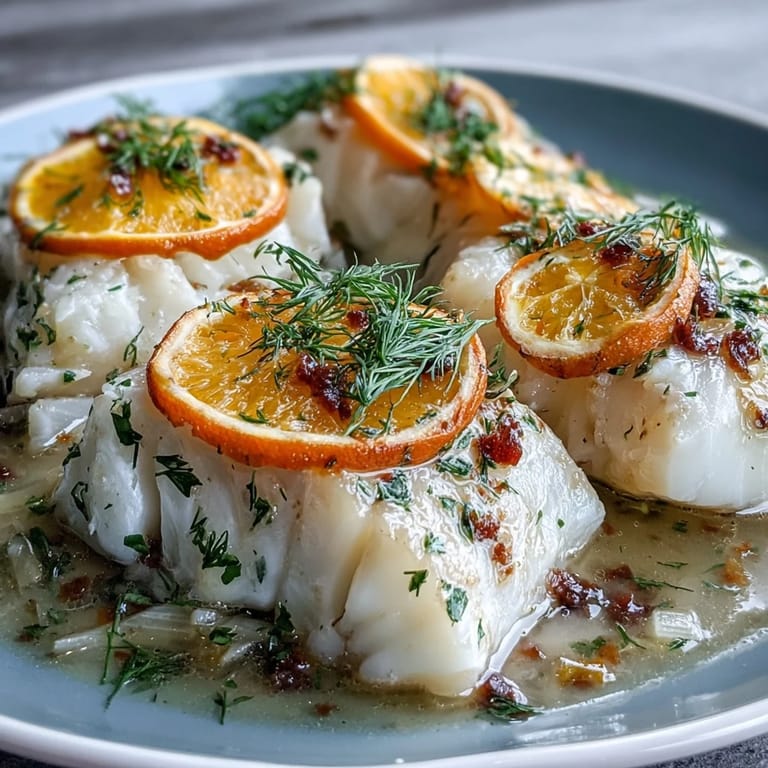 Save There's something about poaching fish that feels almost meditative—the gentle steam rising from a simmering pan, the kitchen filling with the scent of fennel and citrus. I discovered this dish on a gray afternoon when I had fresh cod and an orange sitting on my counter, and somehow that simple combination led to one of the brightest meals I'd made in months. It's become my go-to when I want something that tastes restaurant-quality but requires barely any fuss.