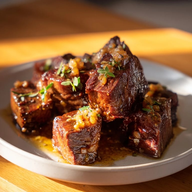 These steak bites are perfect over mashed potatoes, where the garlic butter melts into the creamy base, or piled onto crusty bread for an indulgent open-faced sandwich. Ive also served them over rice, tucked into soft tortillas with sour cream and cilantro, and even tossed with roasted vegetables for a one-pan dinner. If you want to make them dairy-free, swap the butter for olive oil and add a squeeze of lemon at the end for brightness.