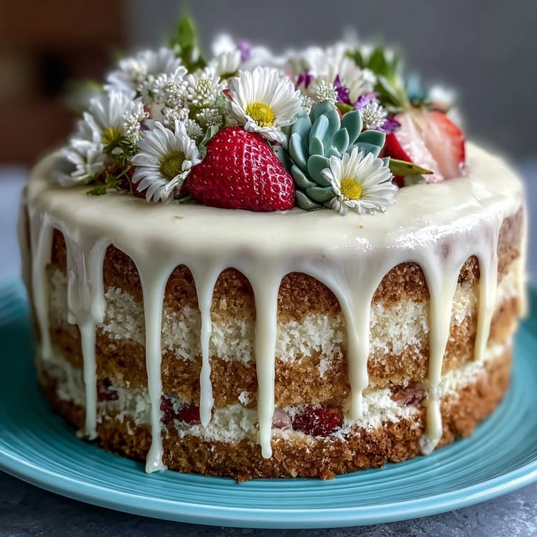 Save The first time I set out to make this Spring Cake, it was on a rainy April afternoon when the light kept shifting and I could hear distant birdsong through the open kitchen window. I remember the gentle hum of the mixer and the sweet scent of strawberries filling the air, promising a celebration even before the cake was baked. There’s something wonderfully mischievous about decorating with edible flowers – I always feel like I’m getting away with stealing a piece of the garden for dessert. While fussing over the white chocolate drip, I caught my reflection in the bowl and realized I was grinning at my own handiwork. This cake always reminds me that spring is best celebrated with color and edible joy.