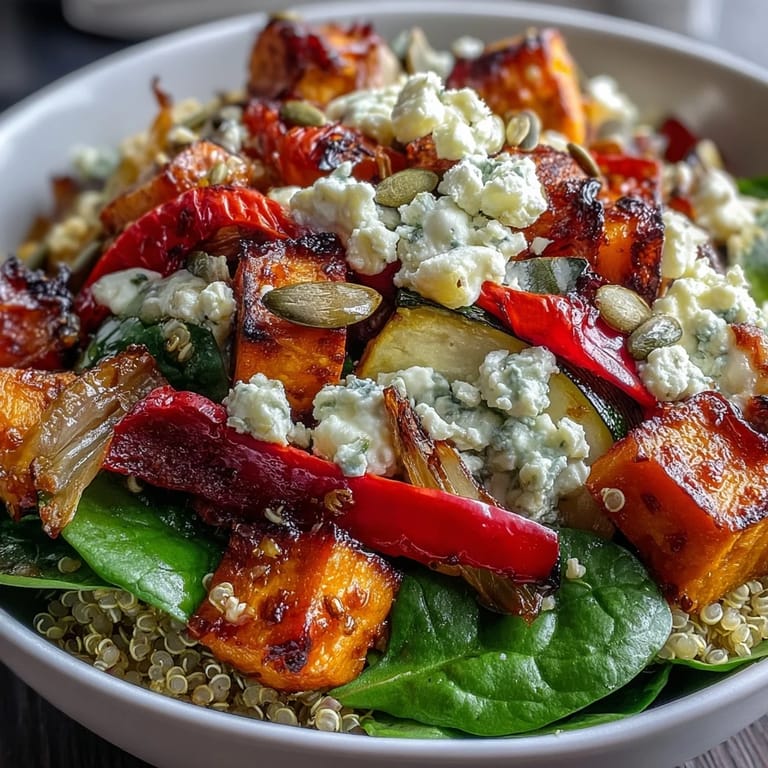 Simply omit the feta or goat cheese topping. The bowl remains satisfying and protein-rich through quinoa, roasted vegetables, and optional toasted pumpkin seeds or chickpeas.